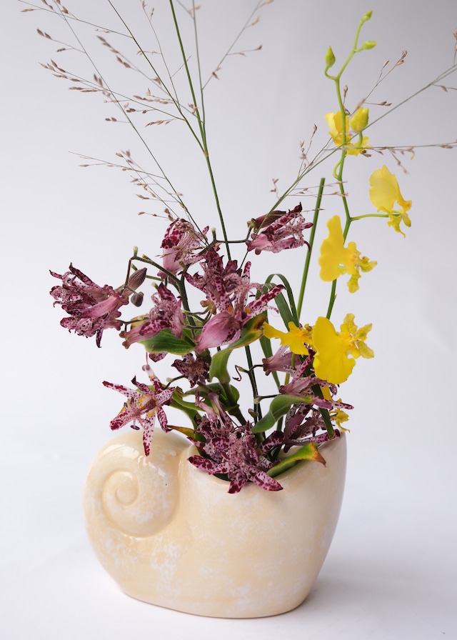 ◼️size (cm) H:8.5 W:13 D:7.2 ◼️material 陶器 ◼️condition 目立つダメージはありません。 (特記すべきコンディションは極力記載していますが、USED品につき細かい傷や汚れをお伝えしきれない場合がございます。ビンテージの風合いをご考慮の上、ご検討下さいませ。) ◼️shipping ヤマト運輸にて ご注文日から1〜4日以内に発送します。 日時指定のご希望は購入ページの備考欄にて お知らせくださいませ。 ◼️gift wrapping ラッピングをご要望のお客様は 購入ページの備考欄にてお知らせくださいませ。 ◼️comment アメリカで買い付けました、シェルモチーフのビンテージ花瓶です。 大きすぎない気軽なサイズ感と、着地面の大きい倒れ辛いフォルムが日常に優しく寄り添います。是非たっぷりお花を入れて楽しんでください! Ec