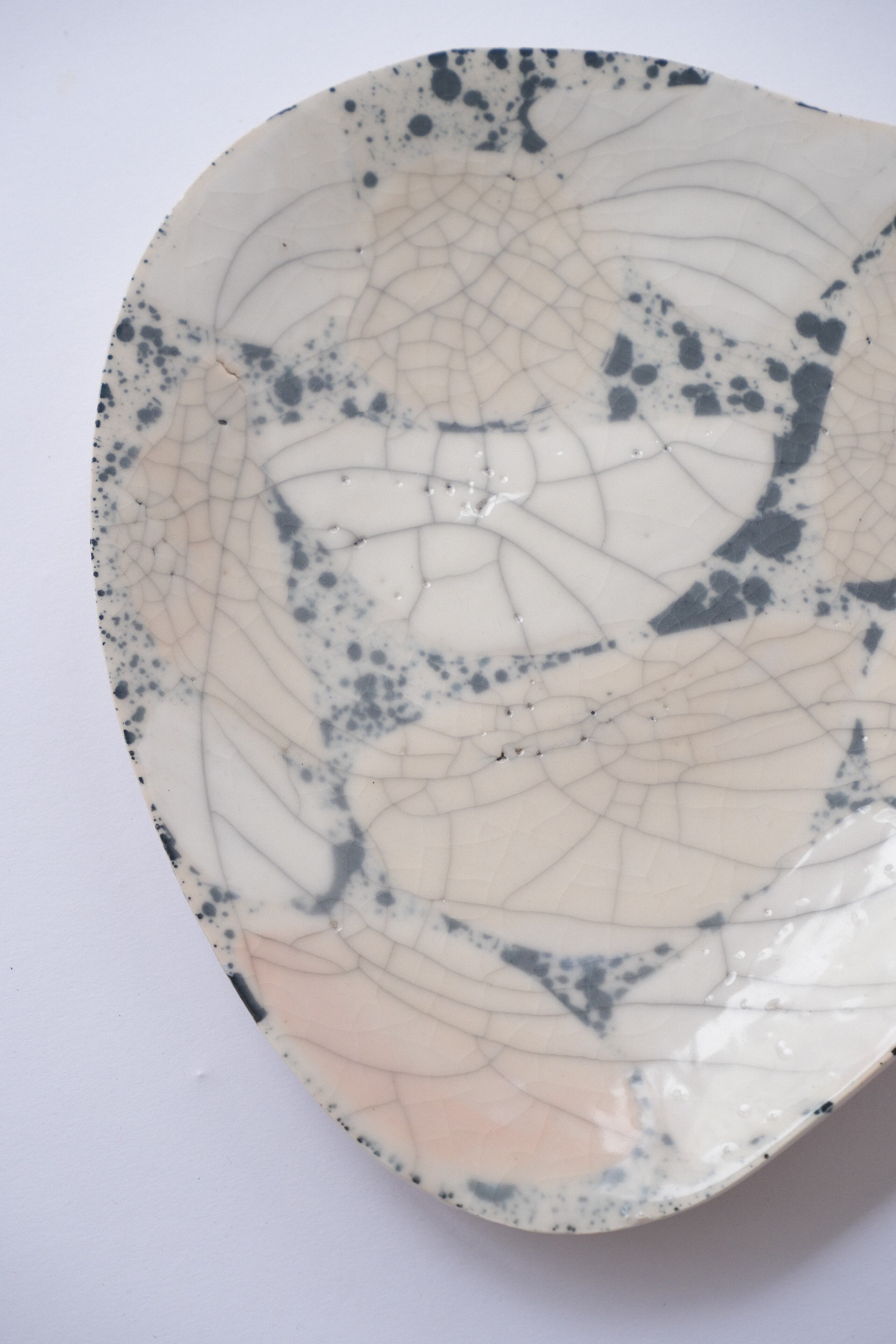 異なる化粧土の貫入(ヒビの柄)を組み合わせ、