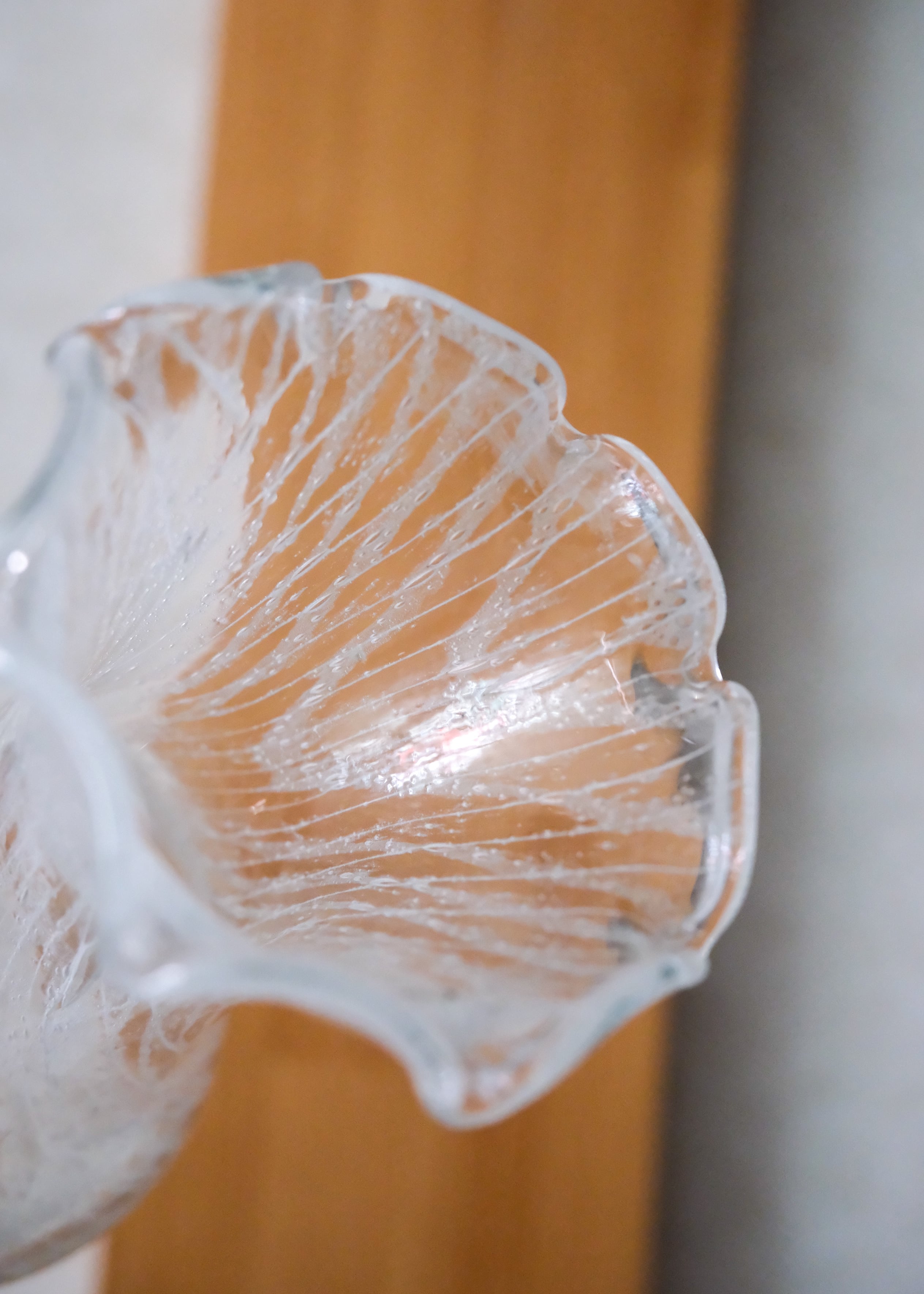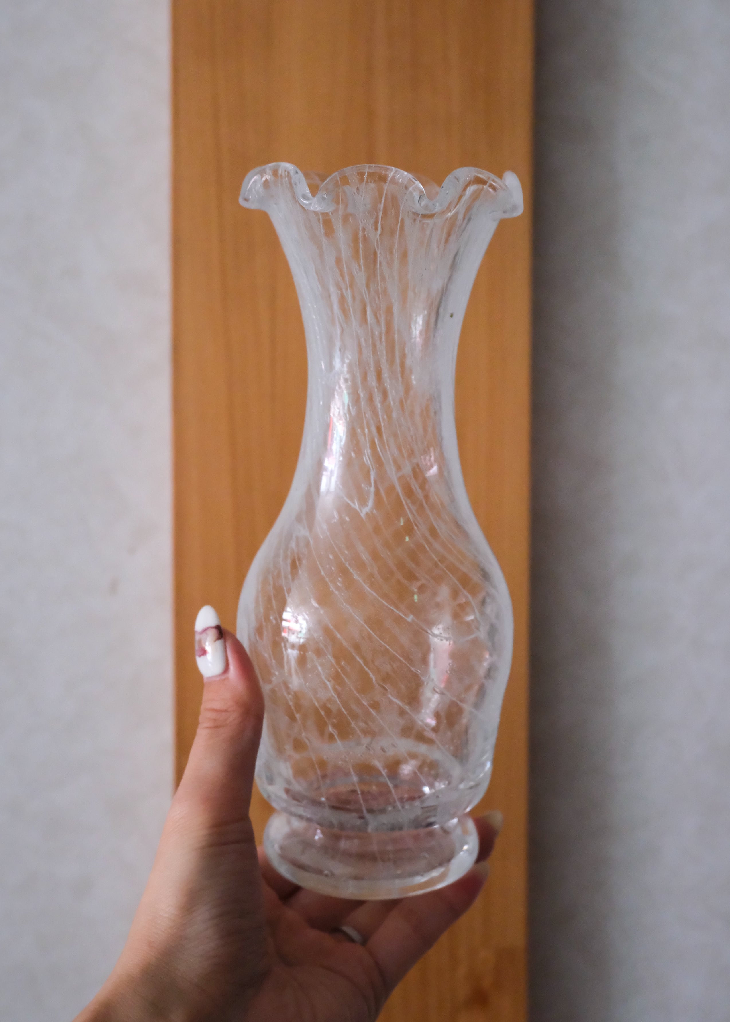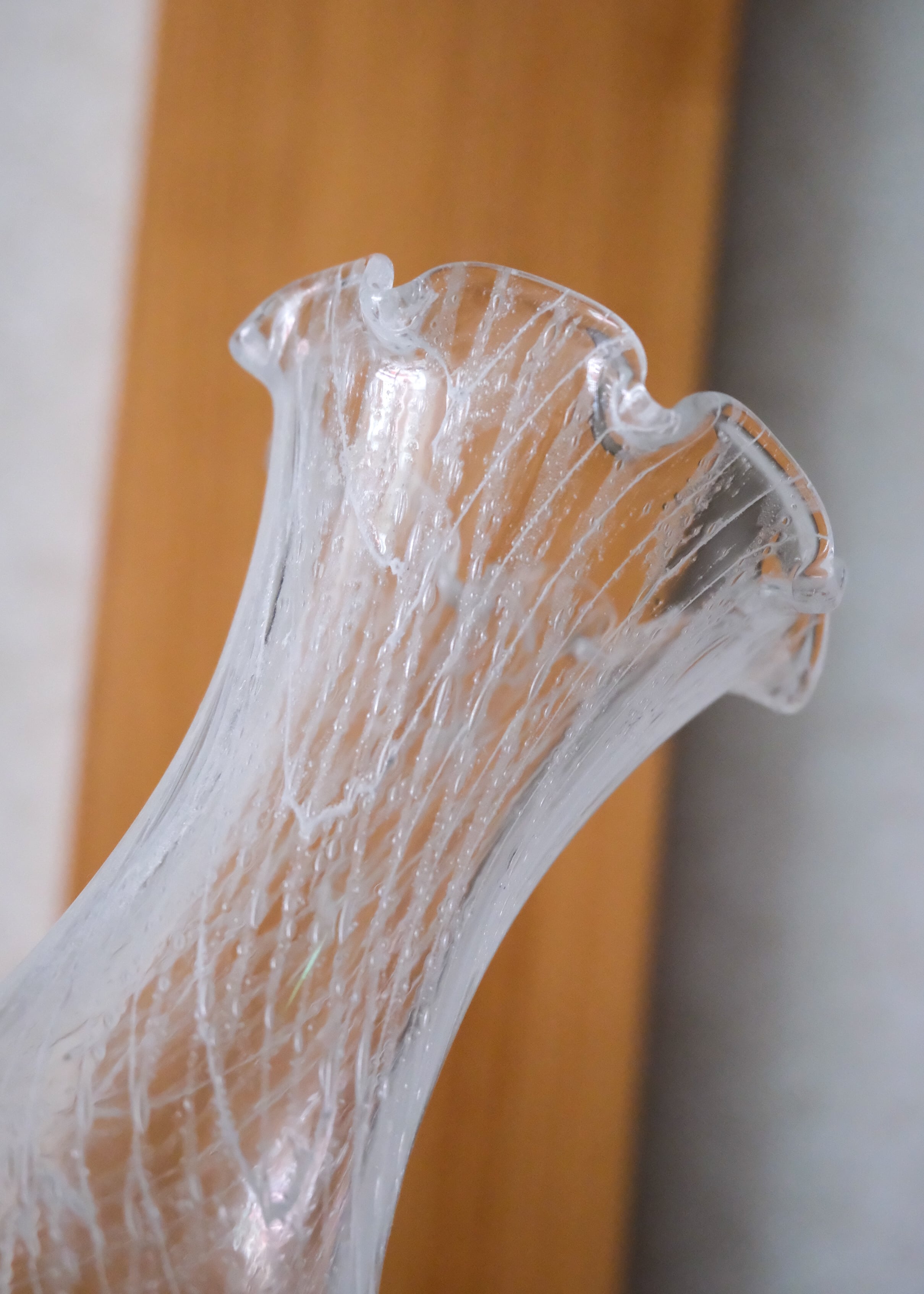 底の部分が若干歪んでおり、少しぐらつきがあります。水やお花を入れての使用は問題なくできますが、状態考慮のお値段です。