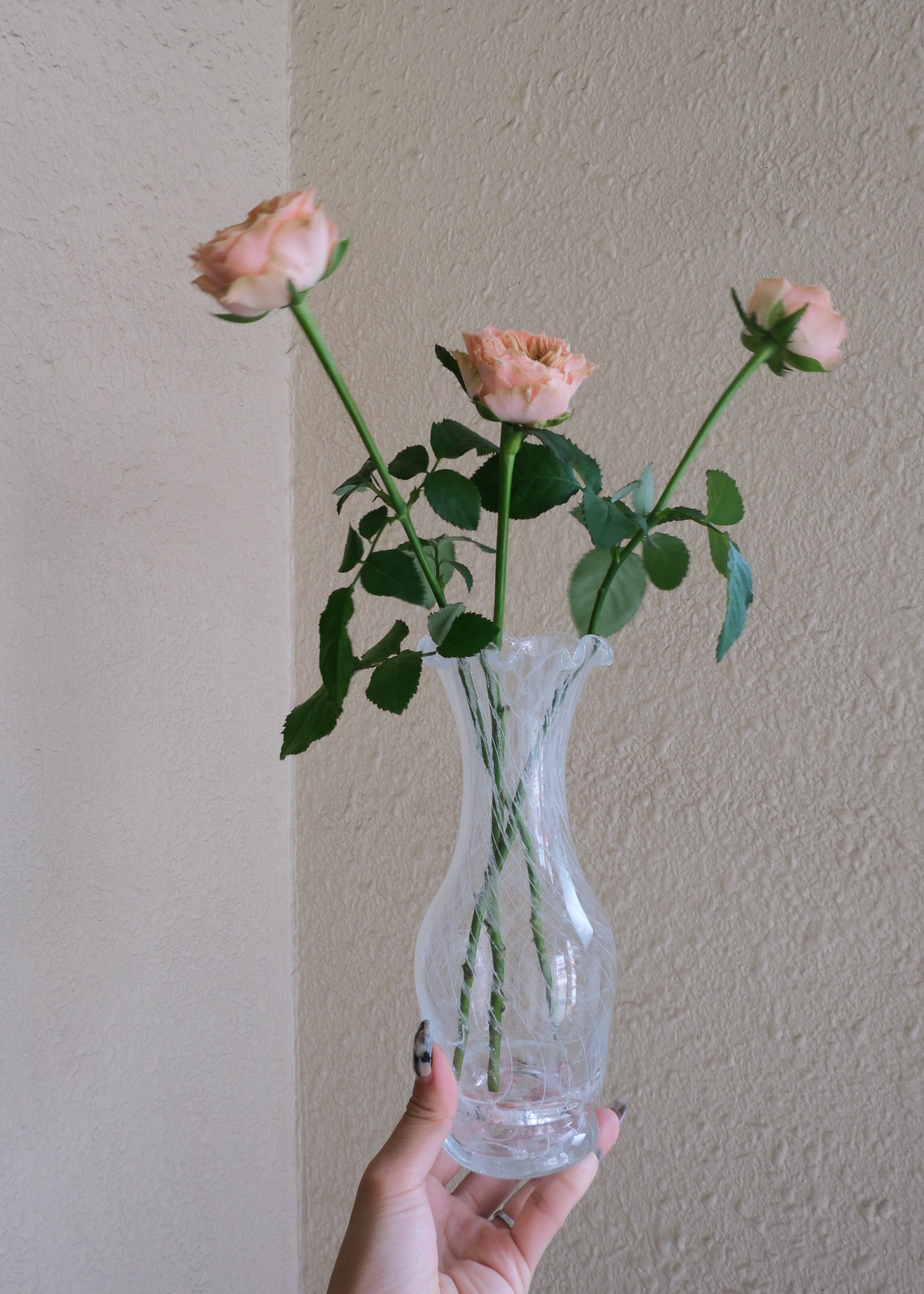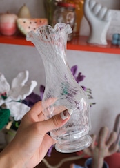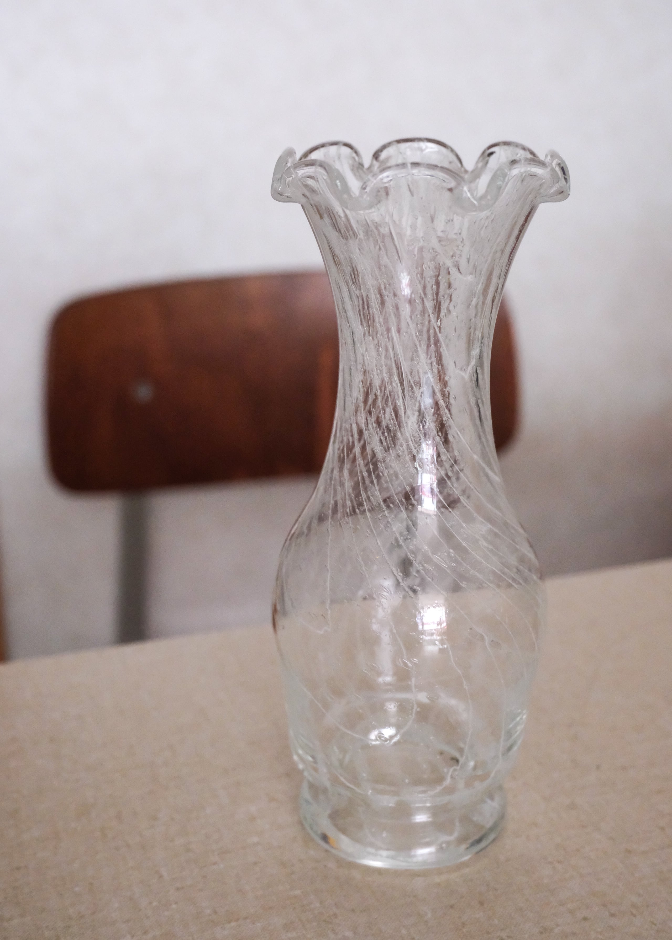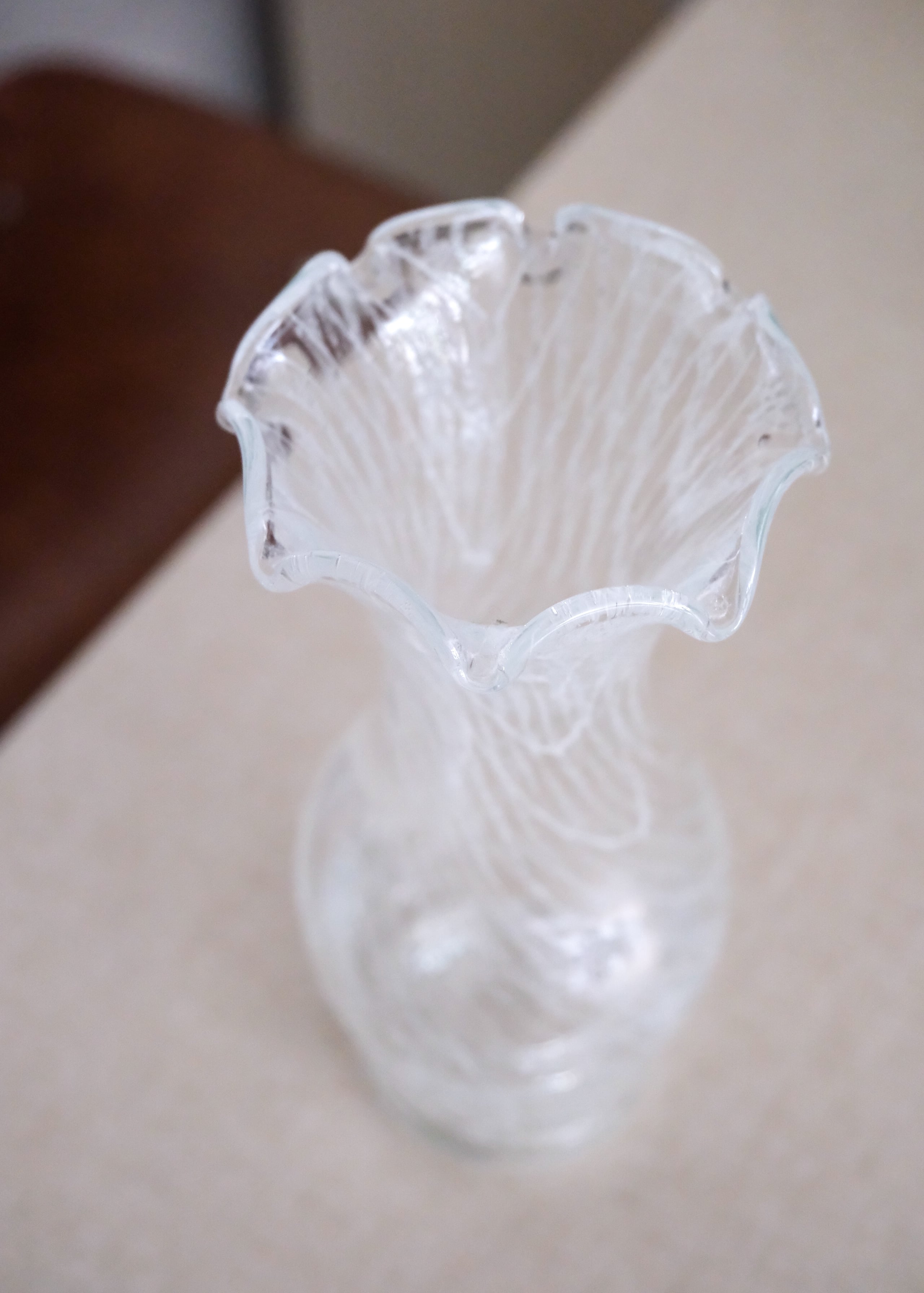 底の部分が若干歪んでおり、少しぐらつきがあります。水やお花を入れての使用は問題なくできますが、状態考慮のお値段です。