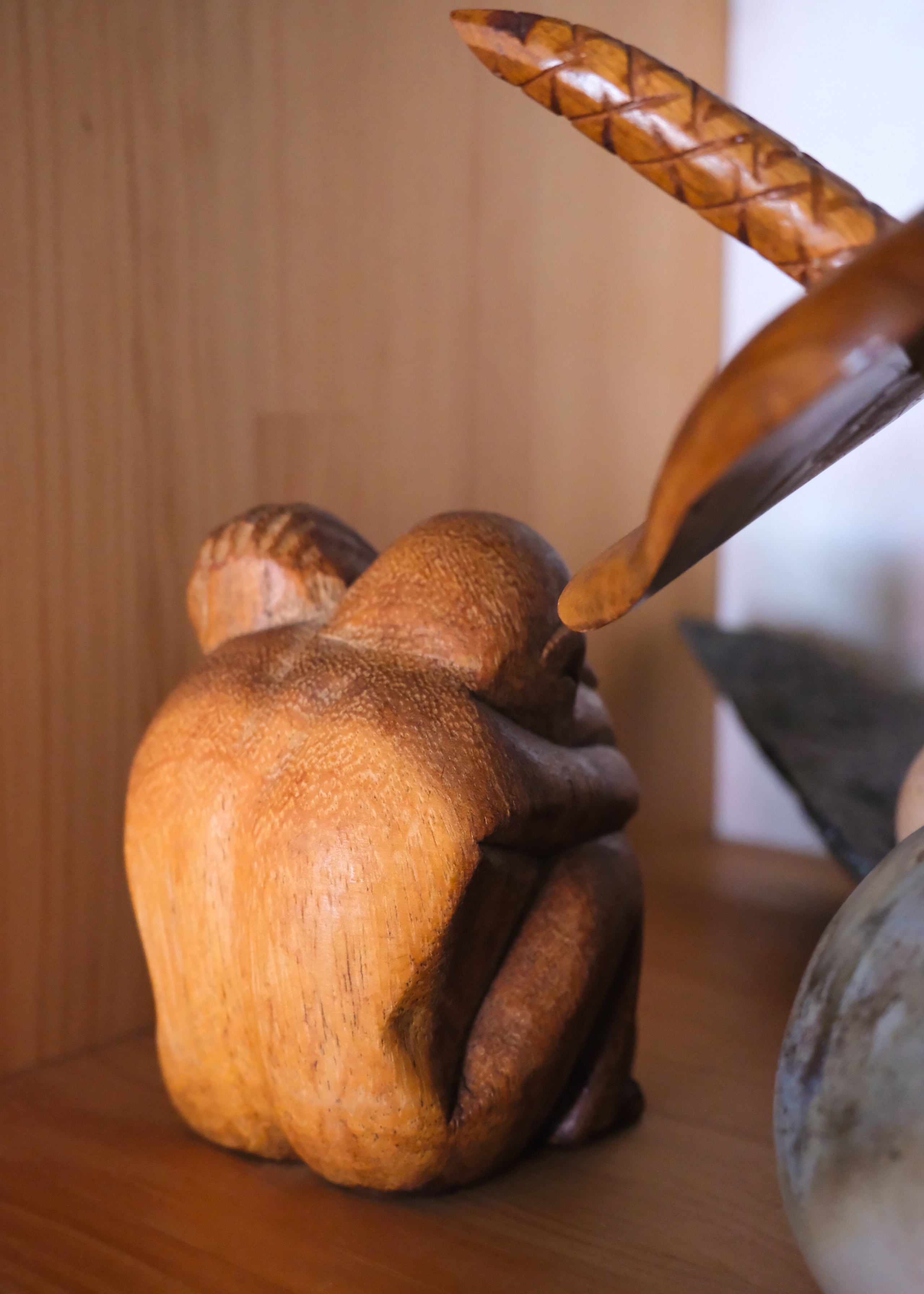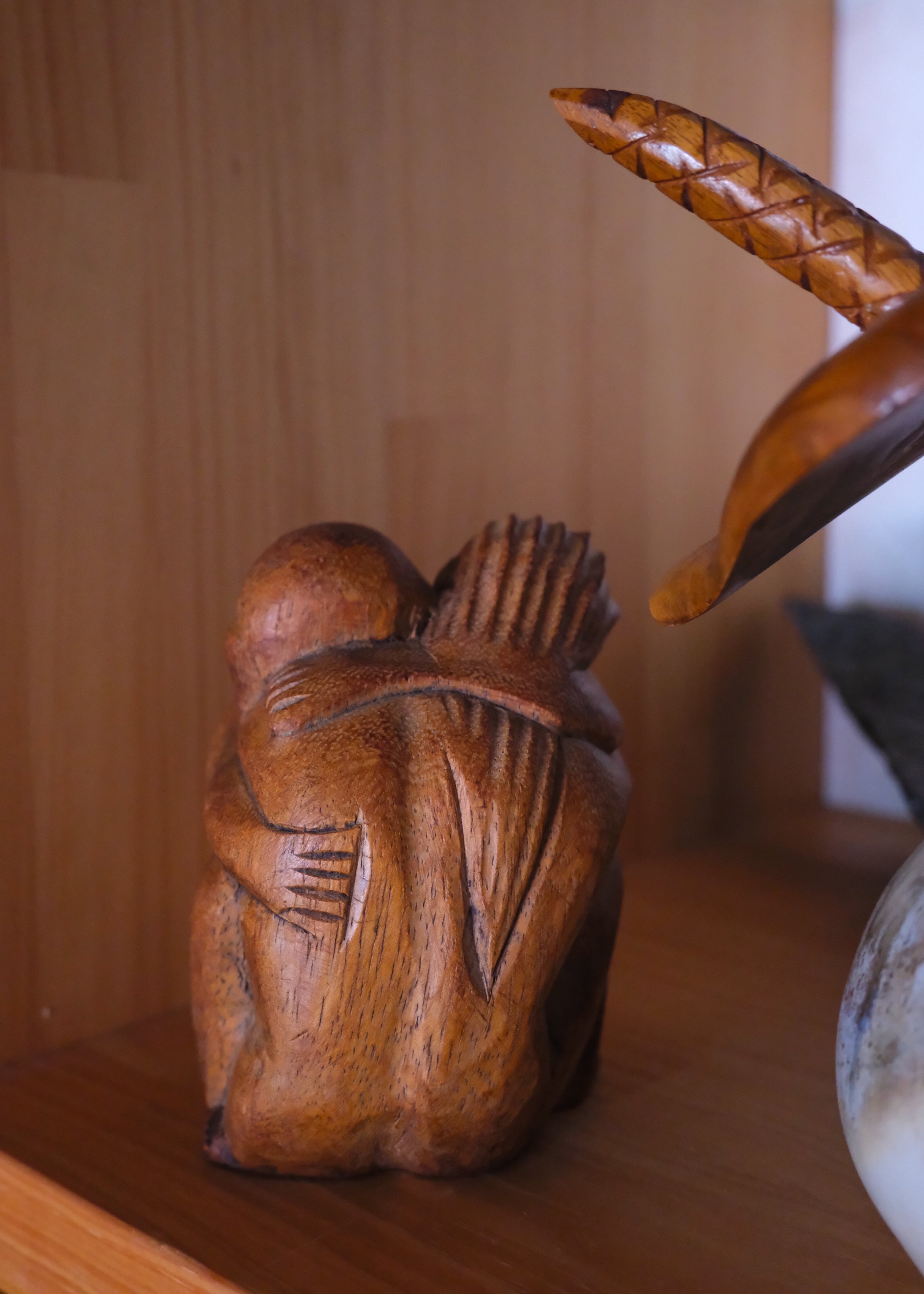 木の温もりがそのまま伝わる手彫りの抱き合う2人のオブジェです。