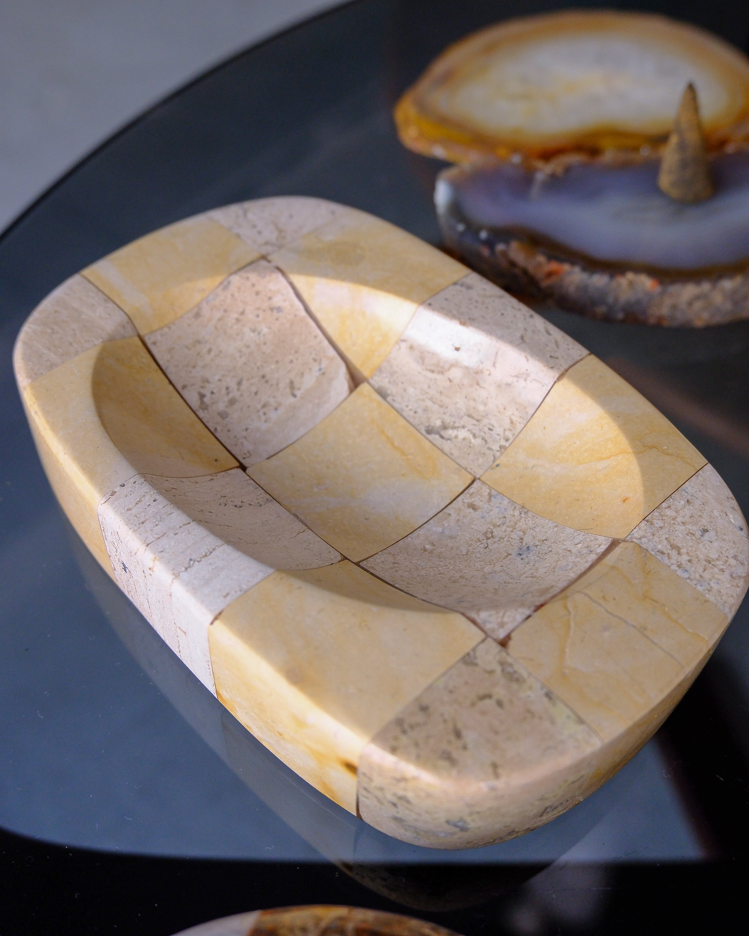 お香立てとして、アクセサリートレイとしてもマルチに活躍する灰皿は天然素材によりそれぞれ模様の異なる一点物です。重厚感のある作りでギフトにも喜ばれています。