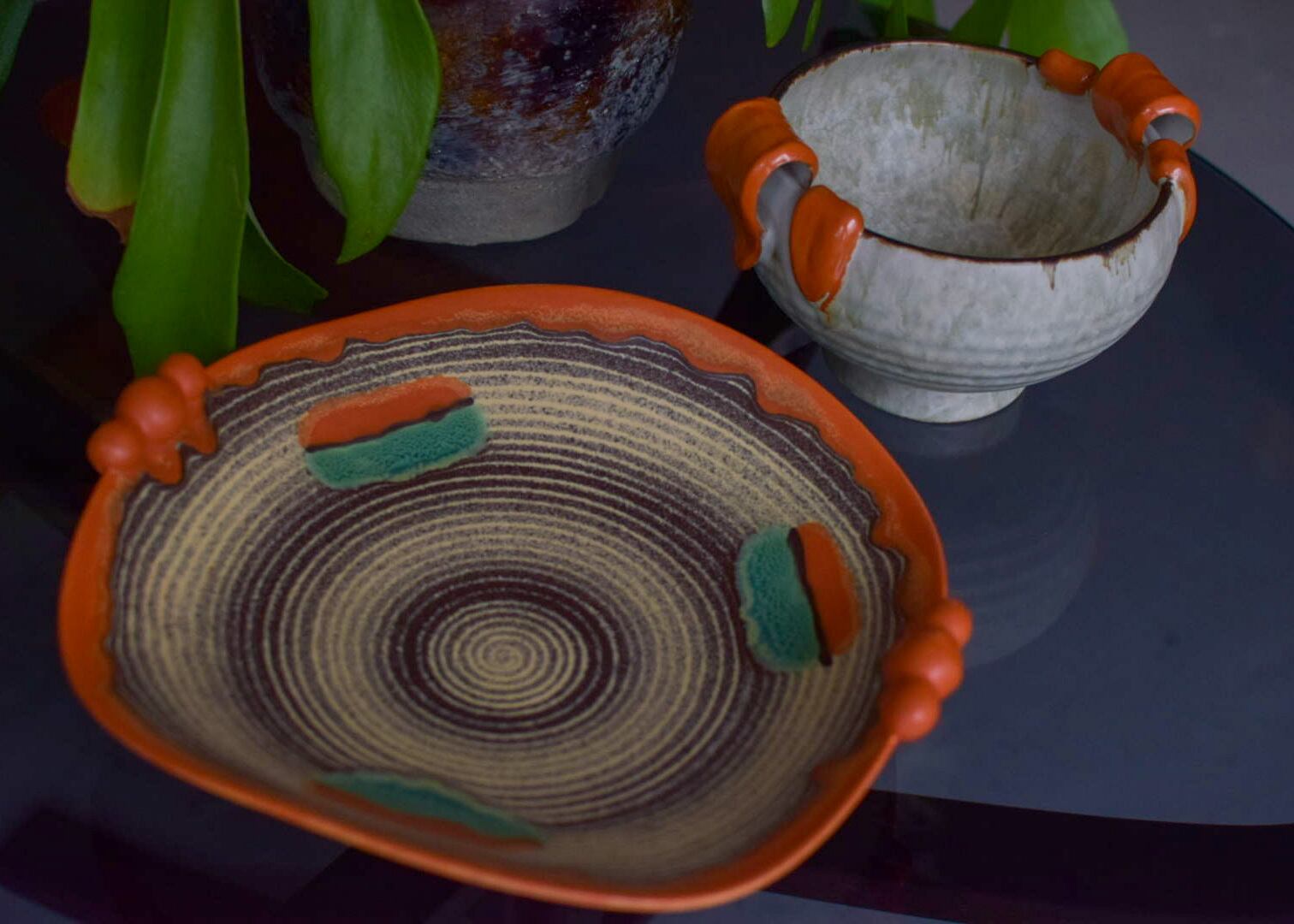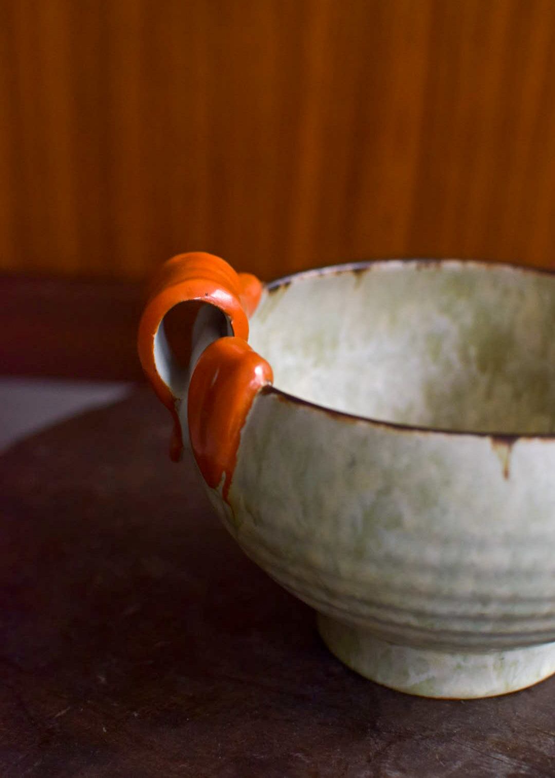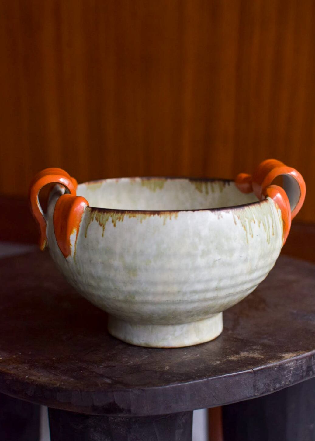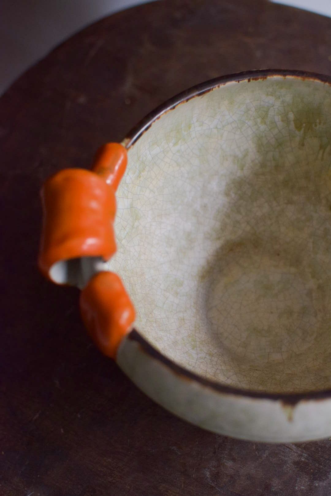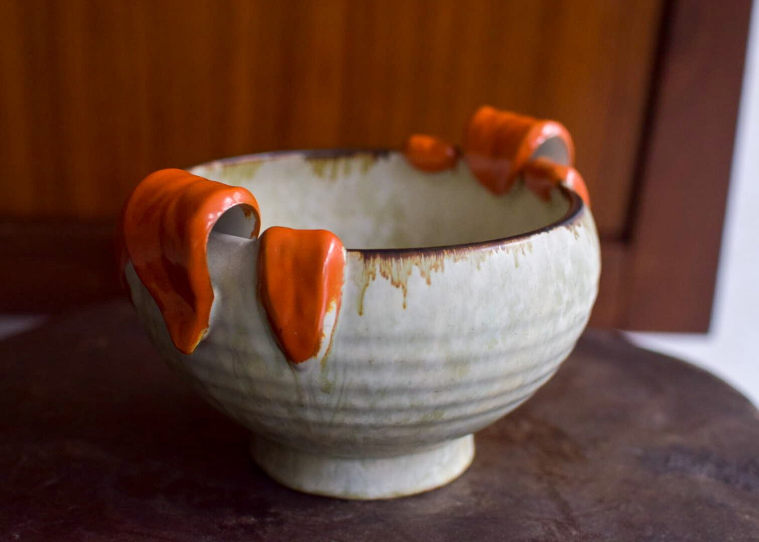 ノルウェーで買い付けた陶器のvintageボウルです。おそらくミッドセンチュリー期のドイツ製です。装飾とフォルム、貫入が美しいアートピースです。