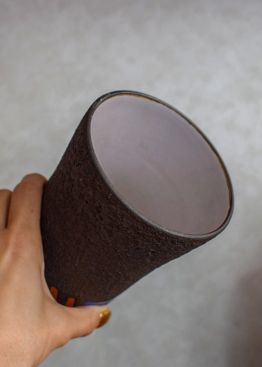 ビビットな幾何学模様が描かれたビンテージベースです。